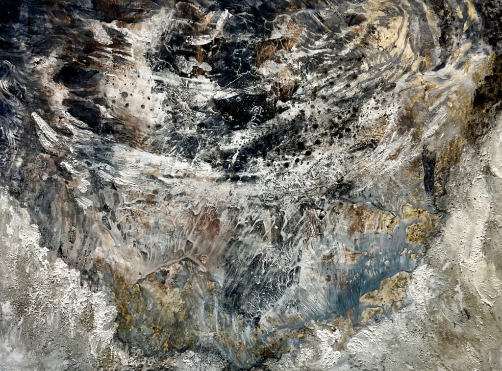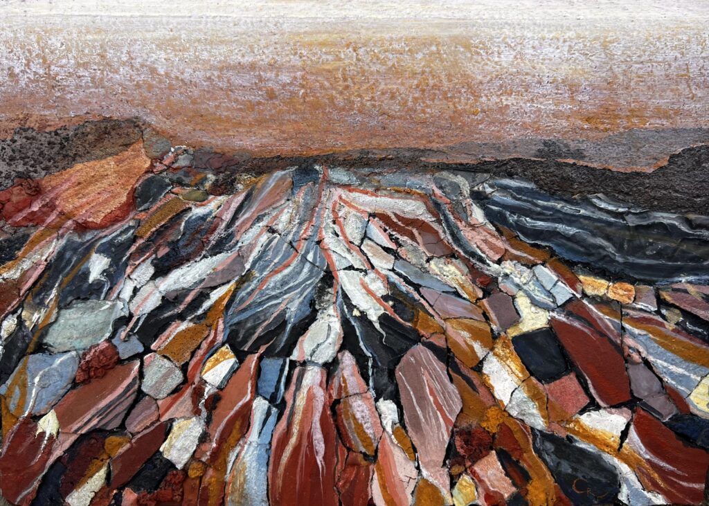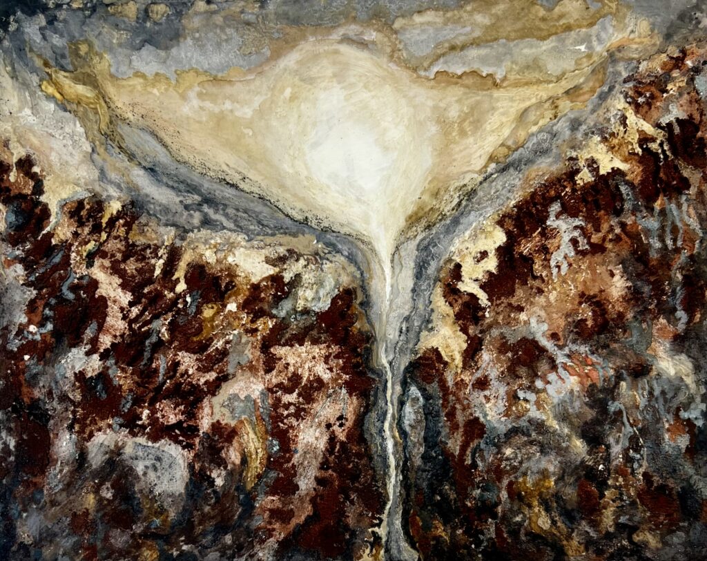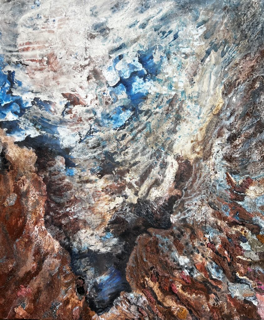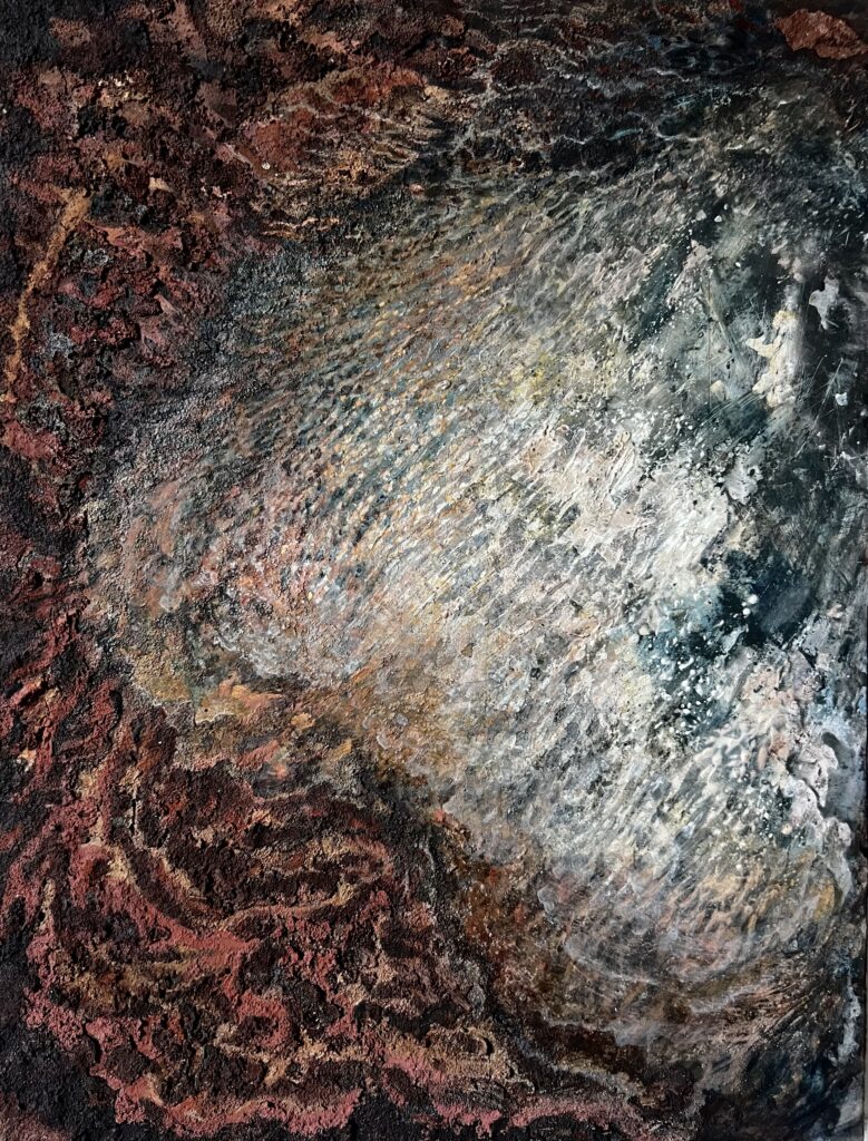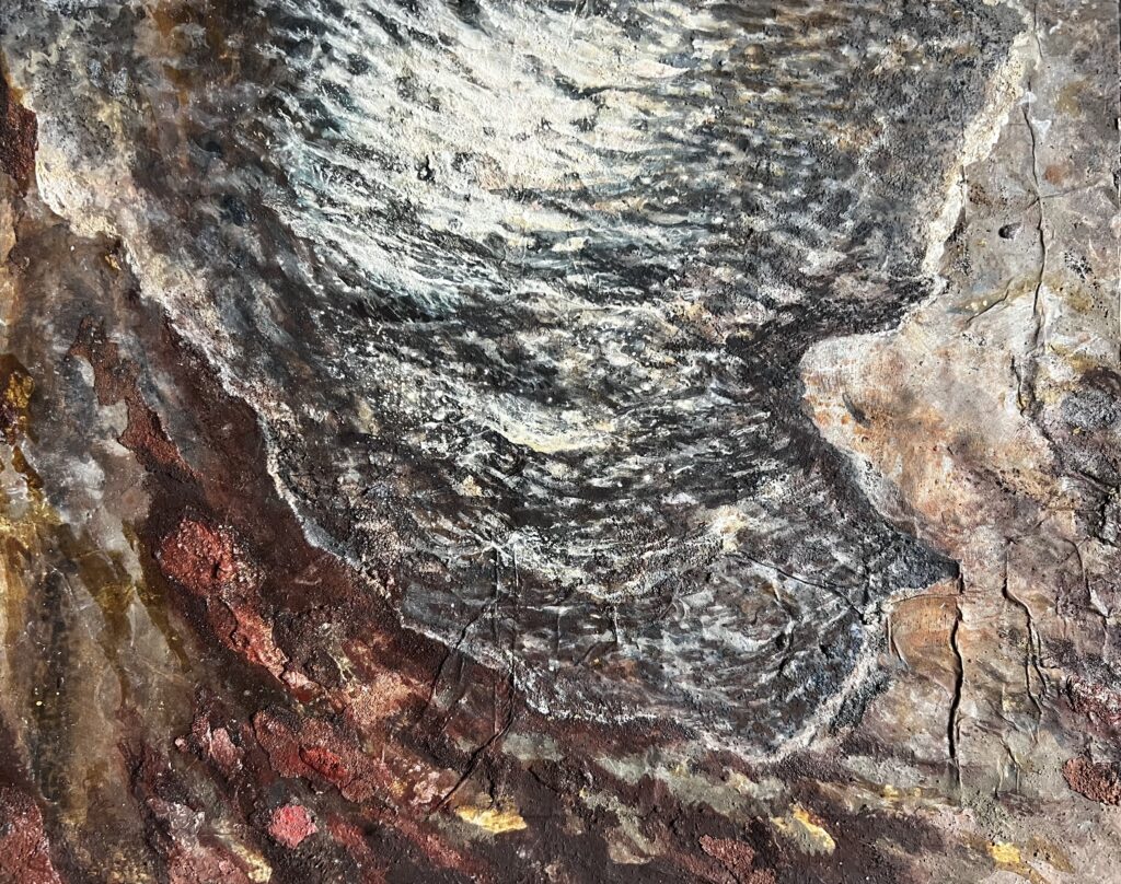 I’m drawn to the patterns found in nature, in my paintings I explore organic forms using natural materials that I find, like earths, clays and minerals, this process connects me to the land.