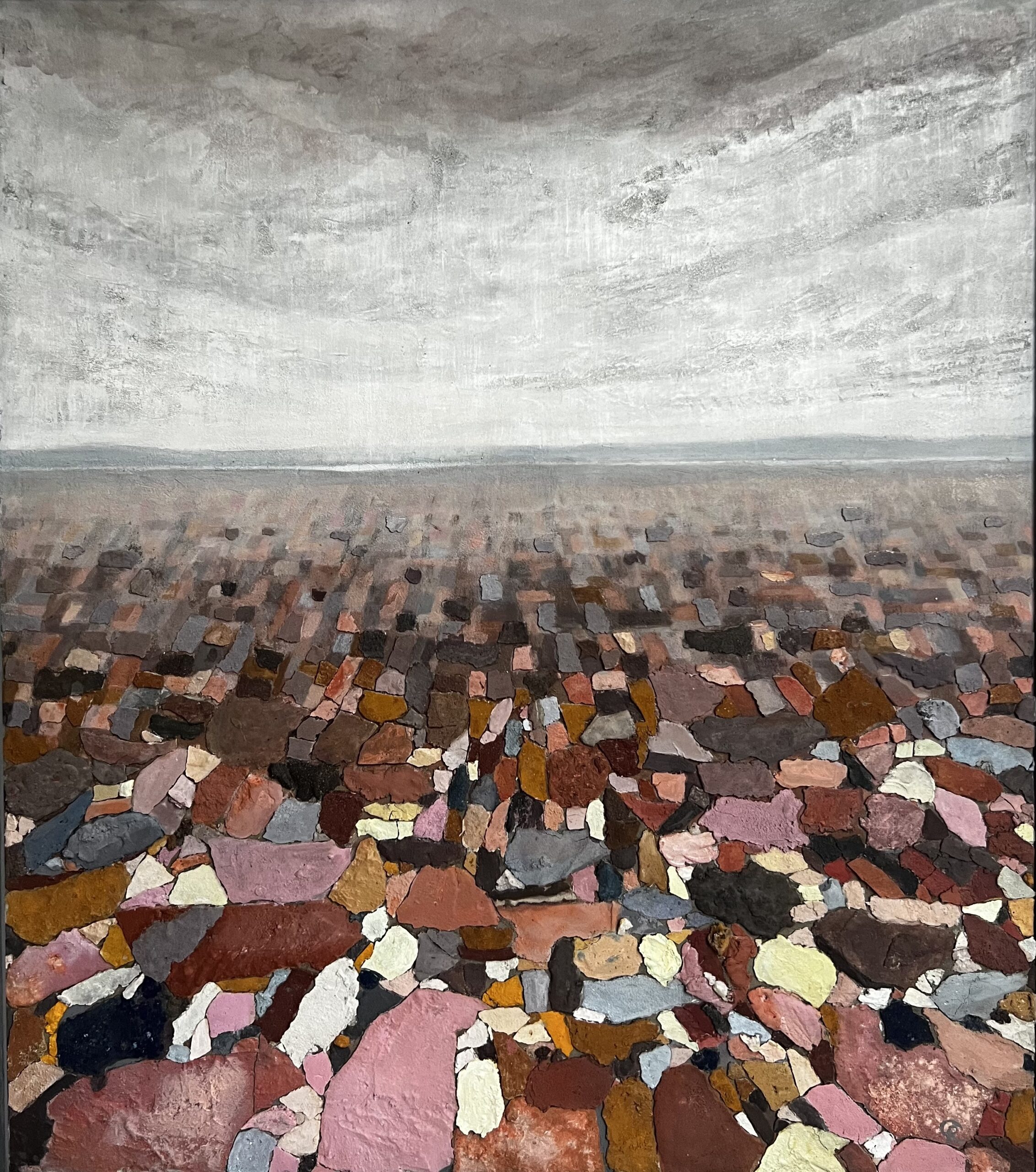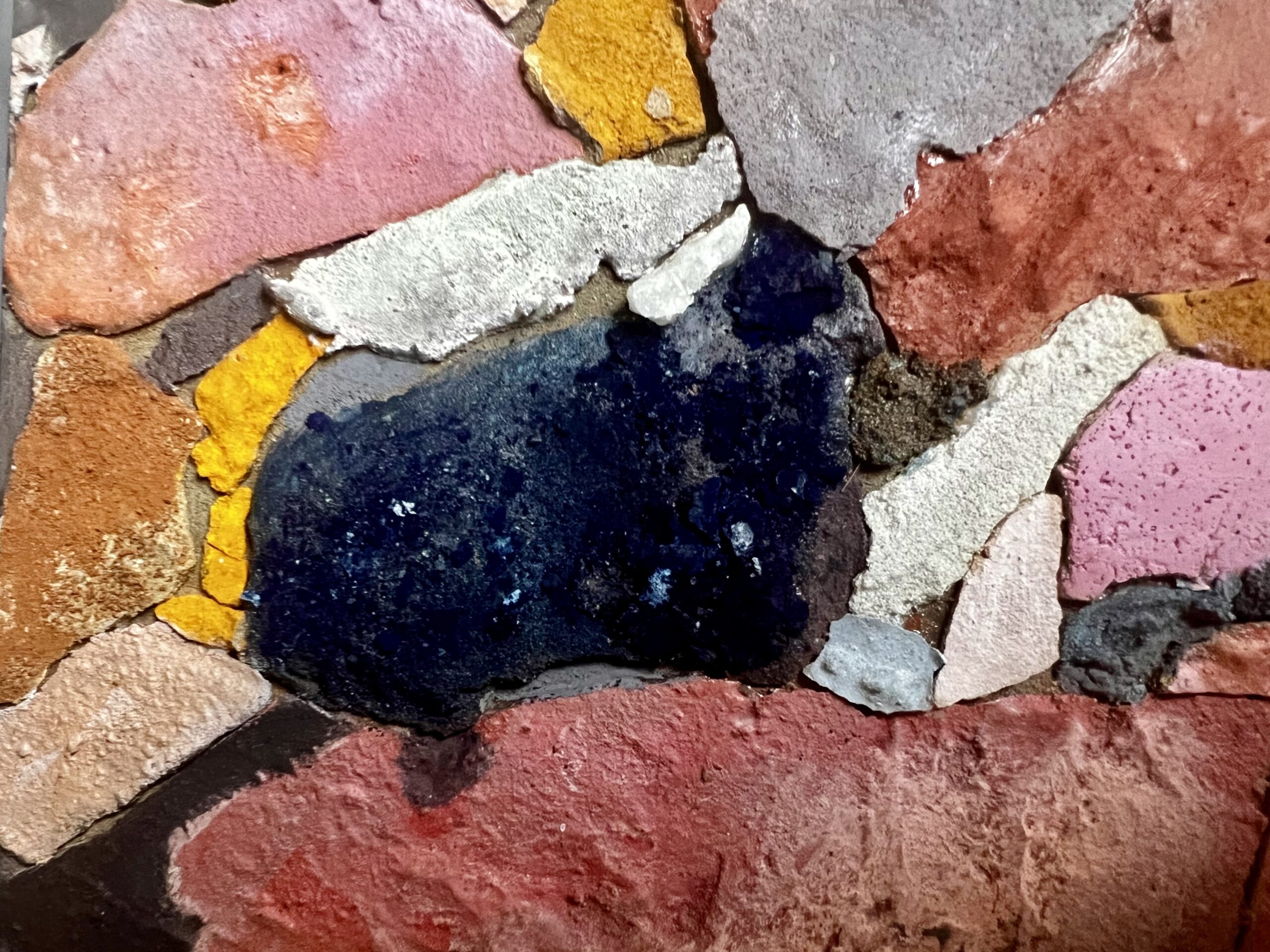 Earths, quartz, pigments, sand, cement and wax.